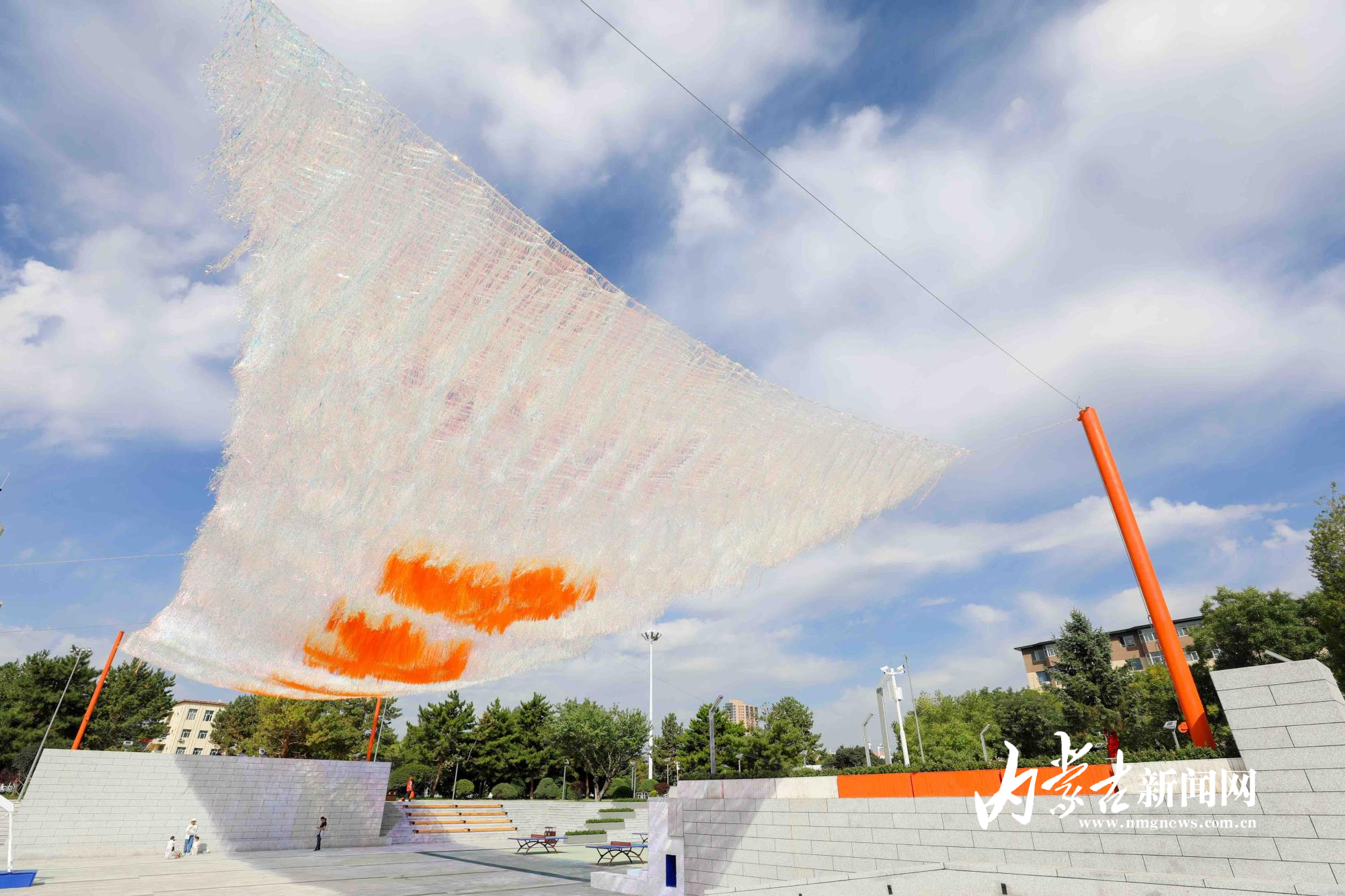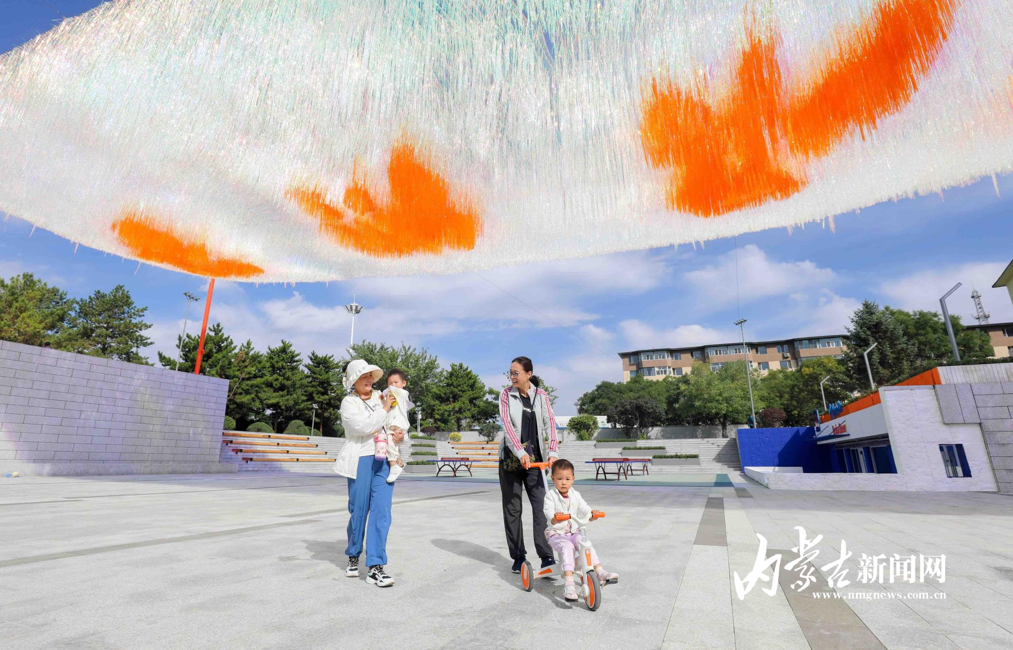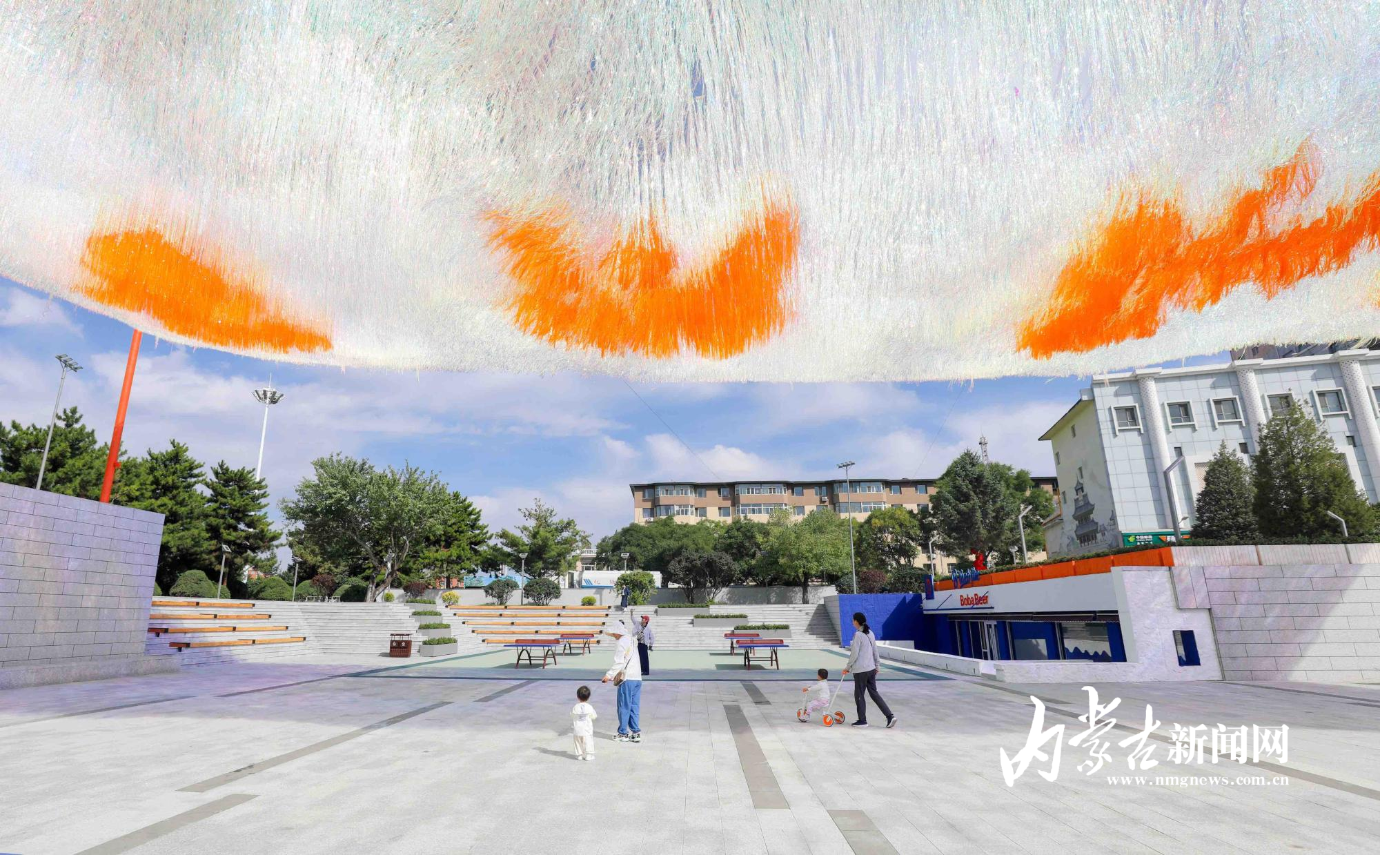 9月8日,呼和浩特市民在回民區錦繡廣場流蘇天幕下游玩。錦繡廣場是在原伊利廣場的基礎上進行改造,占地總面積13735平米,有籃球場、乒乓球場、活動中心等,豐富市民日常生活。攝影/草原云·內蒙古新聞網首席記者 牛天甲